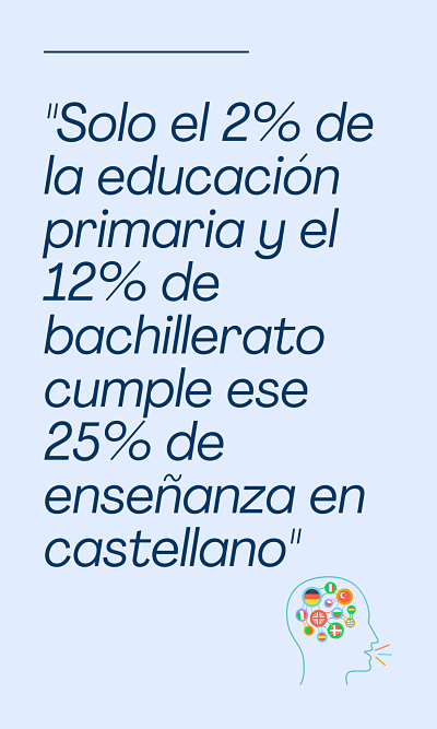 La polémica en lo referente a la lengua vehicular en los centros educativos sigue en alza. El pasado 17 de diciembre los titulares de los distintos medios de comunicación se hacían eco de la candente noticia: El Tribunal Superior de Justicia de Cataluña ordena a la Generalitat garantizar que todos los alumnos reciban un mínimo de 25% de clases en castellano como lengua vehicular. Es importante aclarar que solo 5 de los 184 centros de la muestra que la Generalitat entregó al TSJC imparten “íntegramente” en castellano el 25% de las áreas o materias, al menos una de ella troncal. Estos datos dejan en evidencia que solo cumplen la ley un 2% de las escuelas.